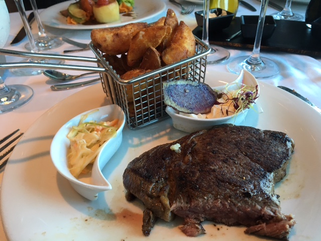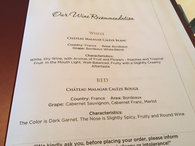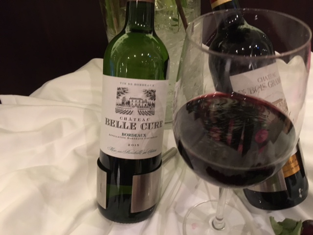 Dinner stared at 7pm and we we all sat together on 2 tables side by side . See pics of menu and the 2 Bordeaux wines served. Every night we will be offered 2 new Bordeaux wines all from easy, fruity enjoyable Petits Chateaux. You can always choose a wine from their reserve list if yoiu so desire.